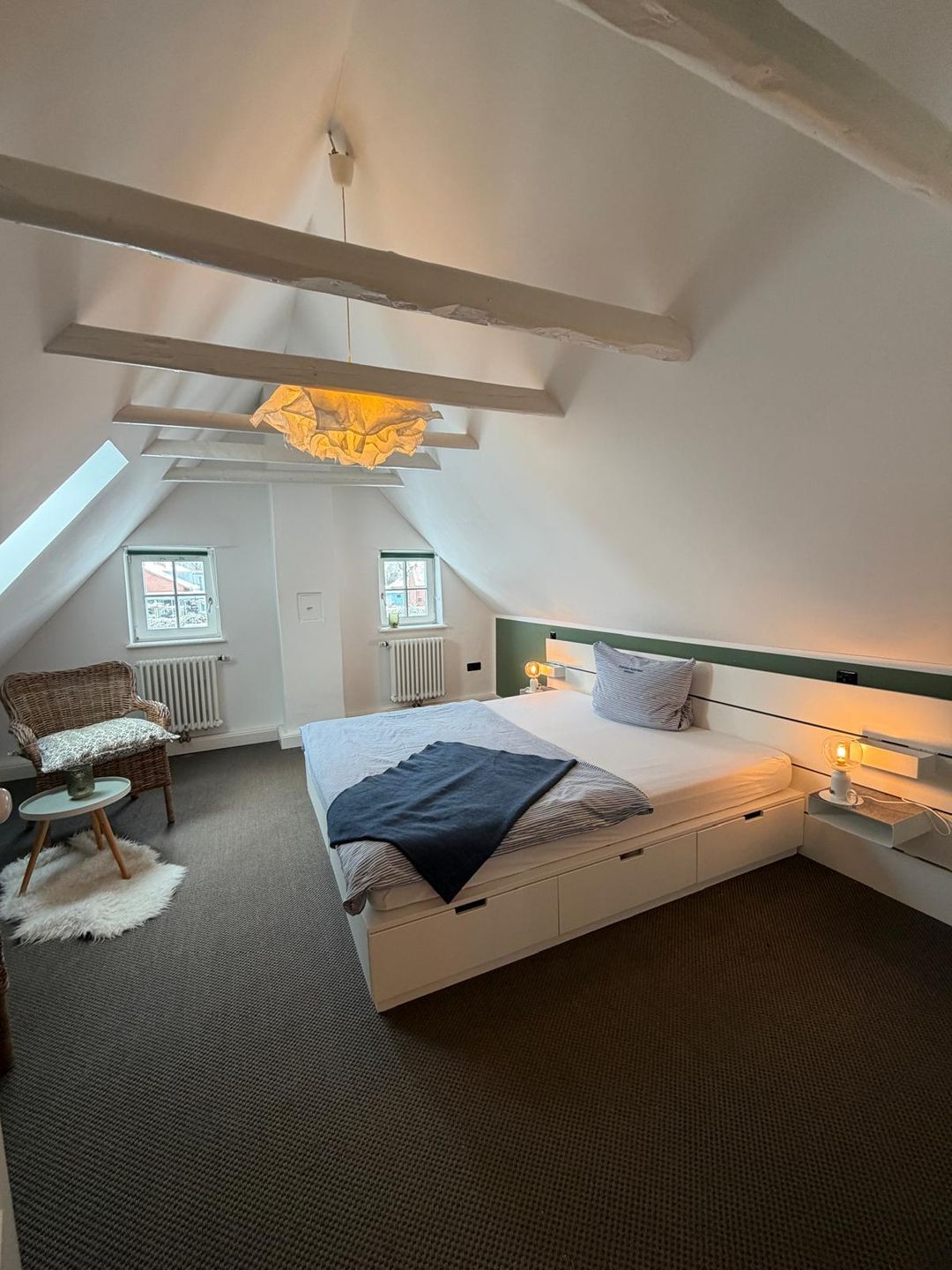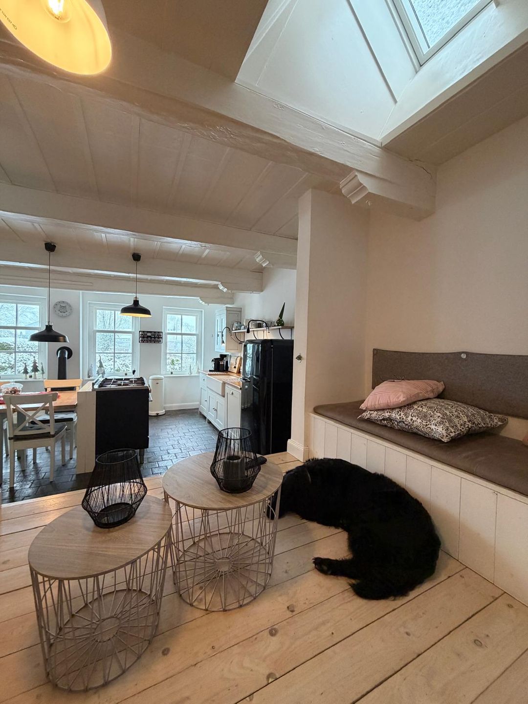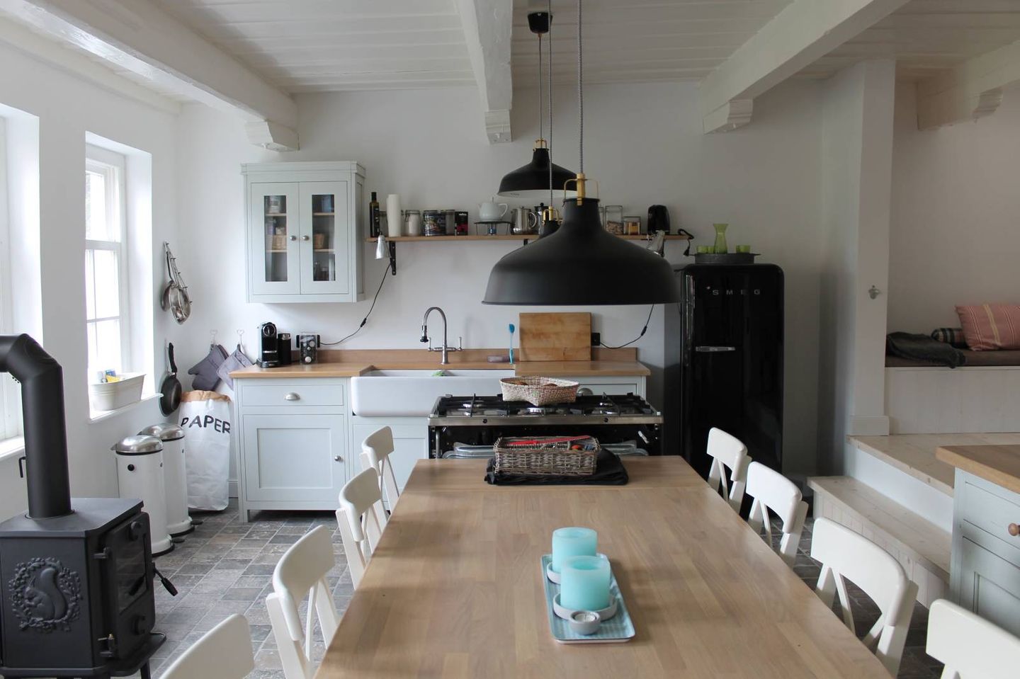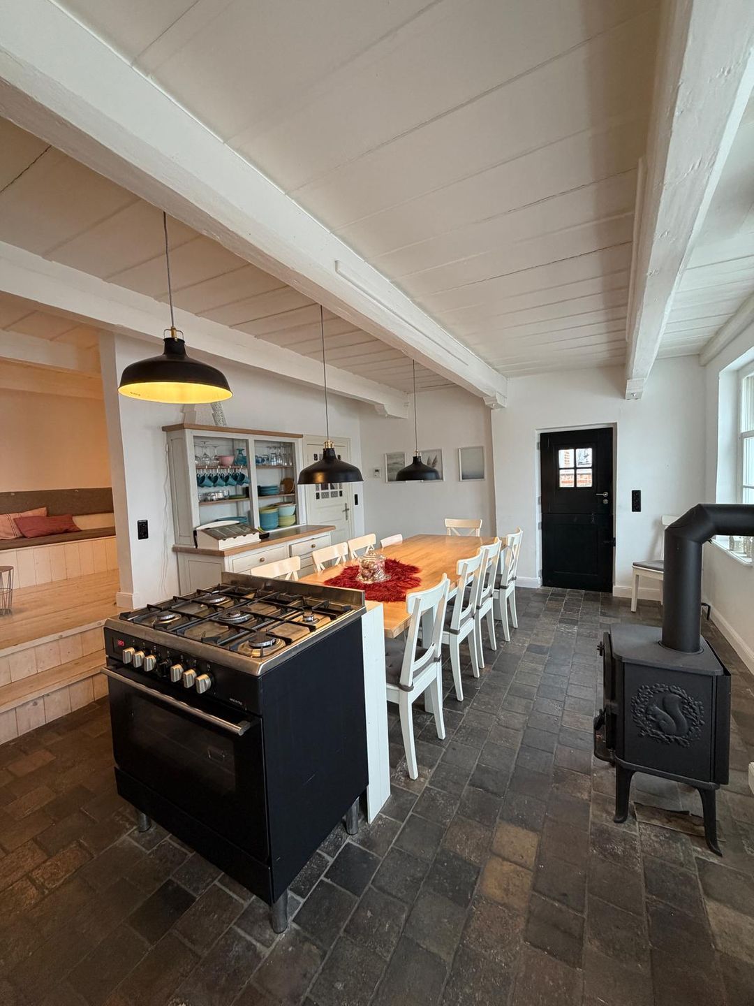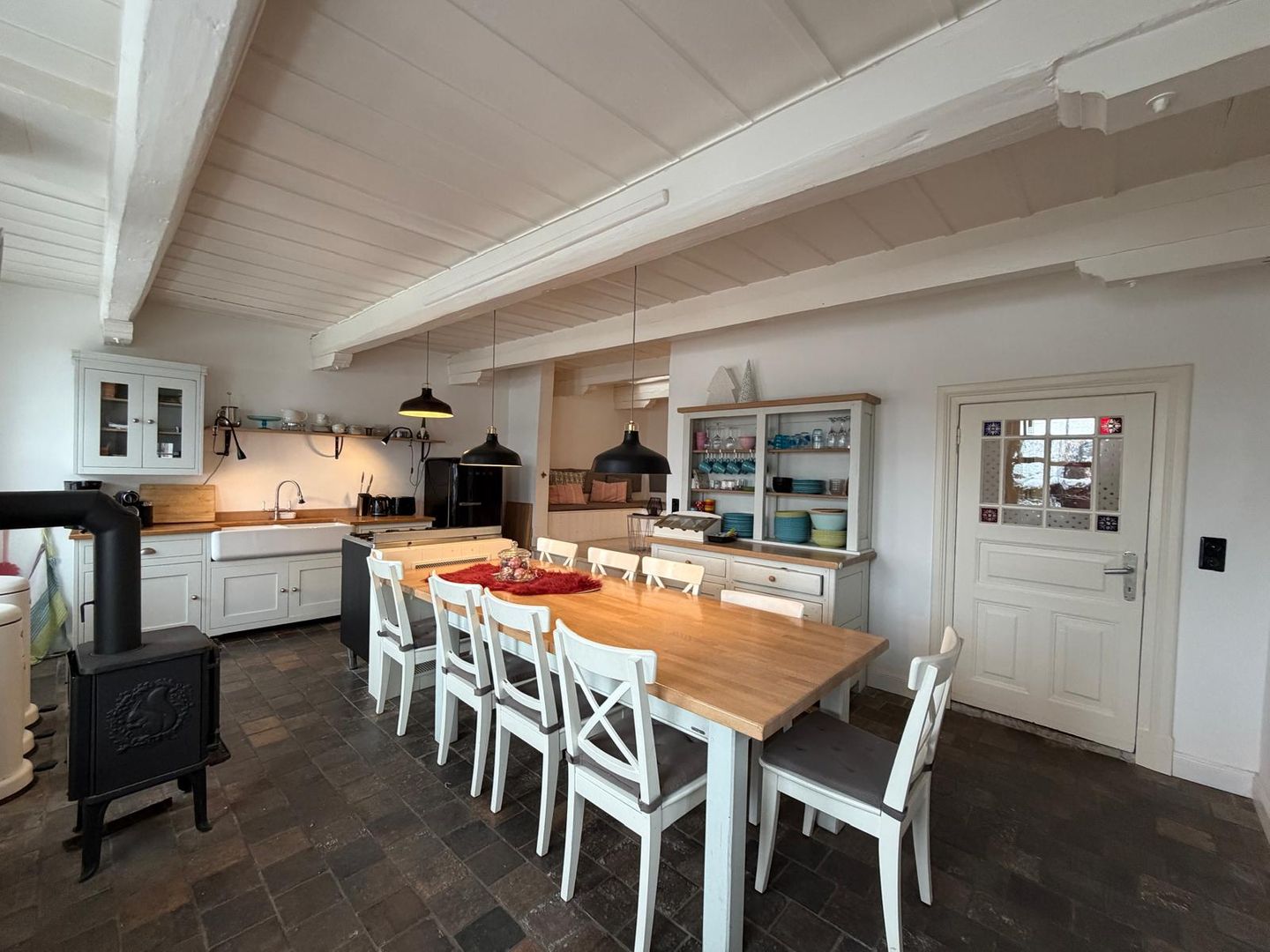 Im Inneren erwartet Sie eine großzügige Wohnküche mit viel Platz zum gemeinsamen Kochen, Essen und Lachen, ein gemütlicher Kamin für die kühleren Tage und der unverwechselbare historische Flair eines echten Fischerhauses.