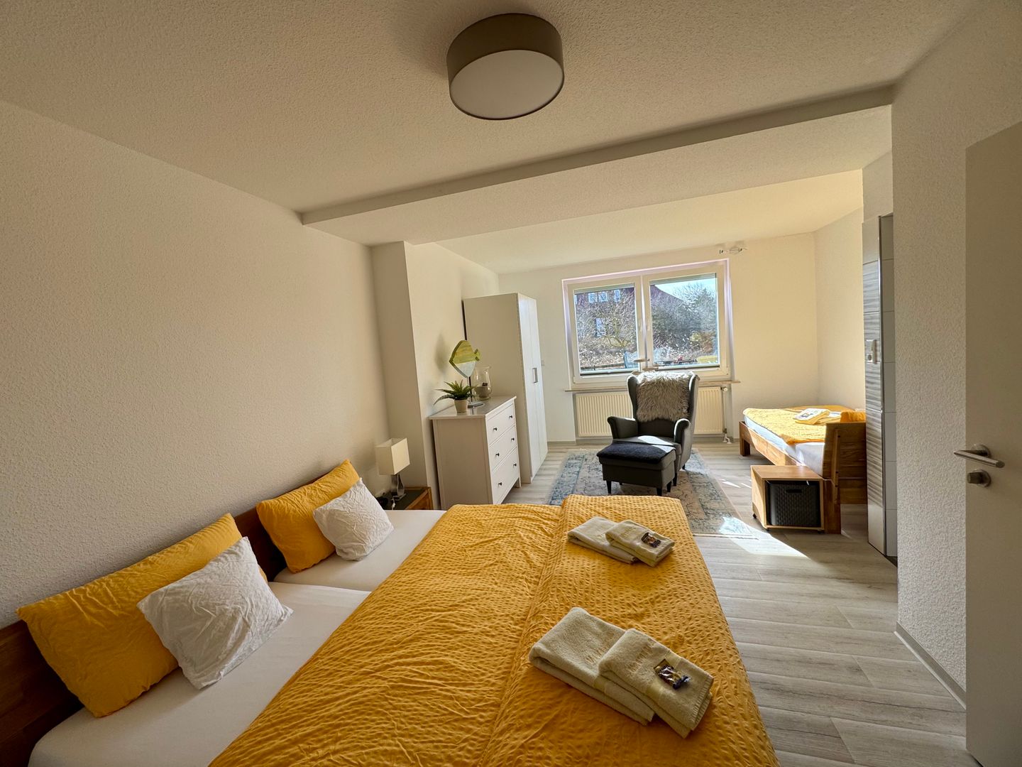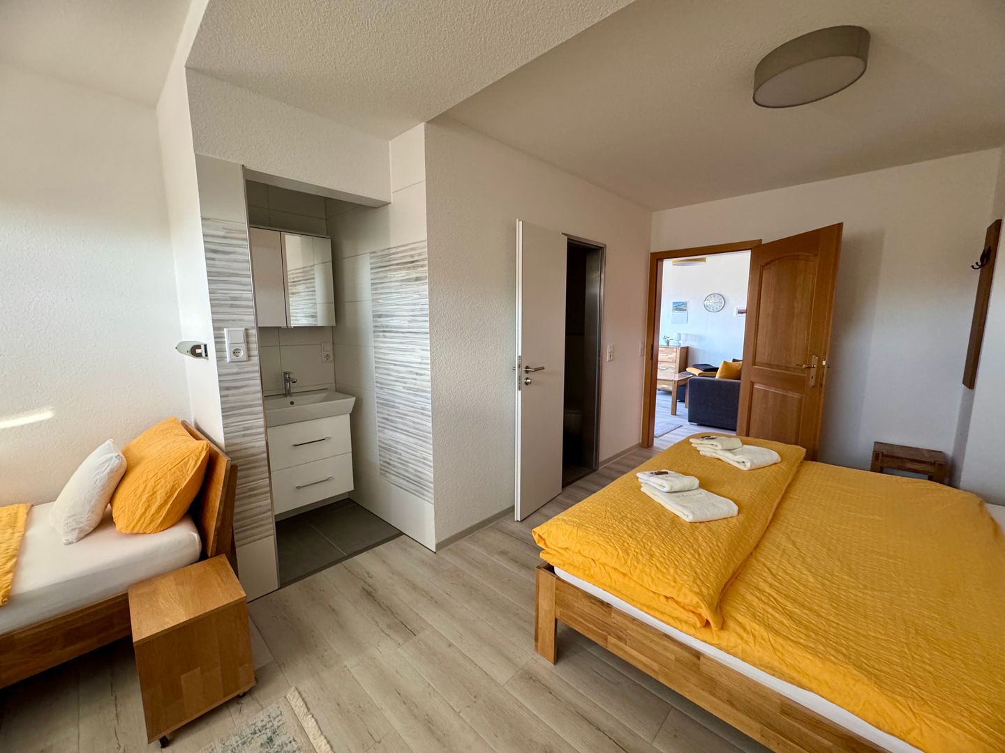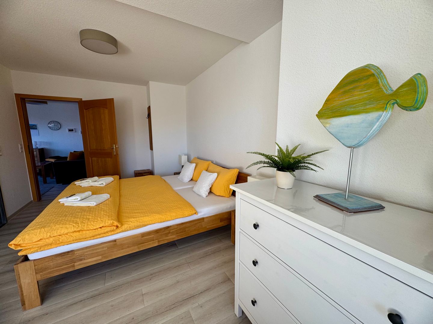 • Technik und Unterhaltung: Ein Smart-TV und Radio sorgen für Unterhaltung. Kostenloses WLAN ist in der Wohnung verfügbar, ebenso ein Telefon, das für Gespräche ins deutsche Festnetz genutzt werden kann.